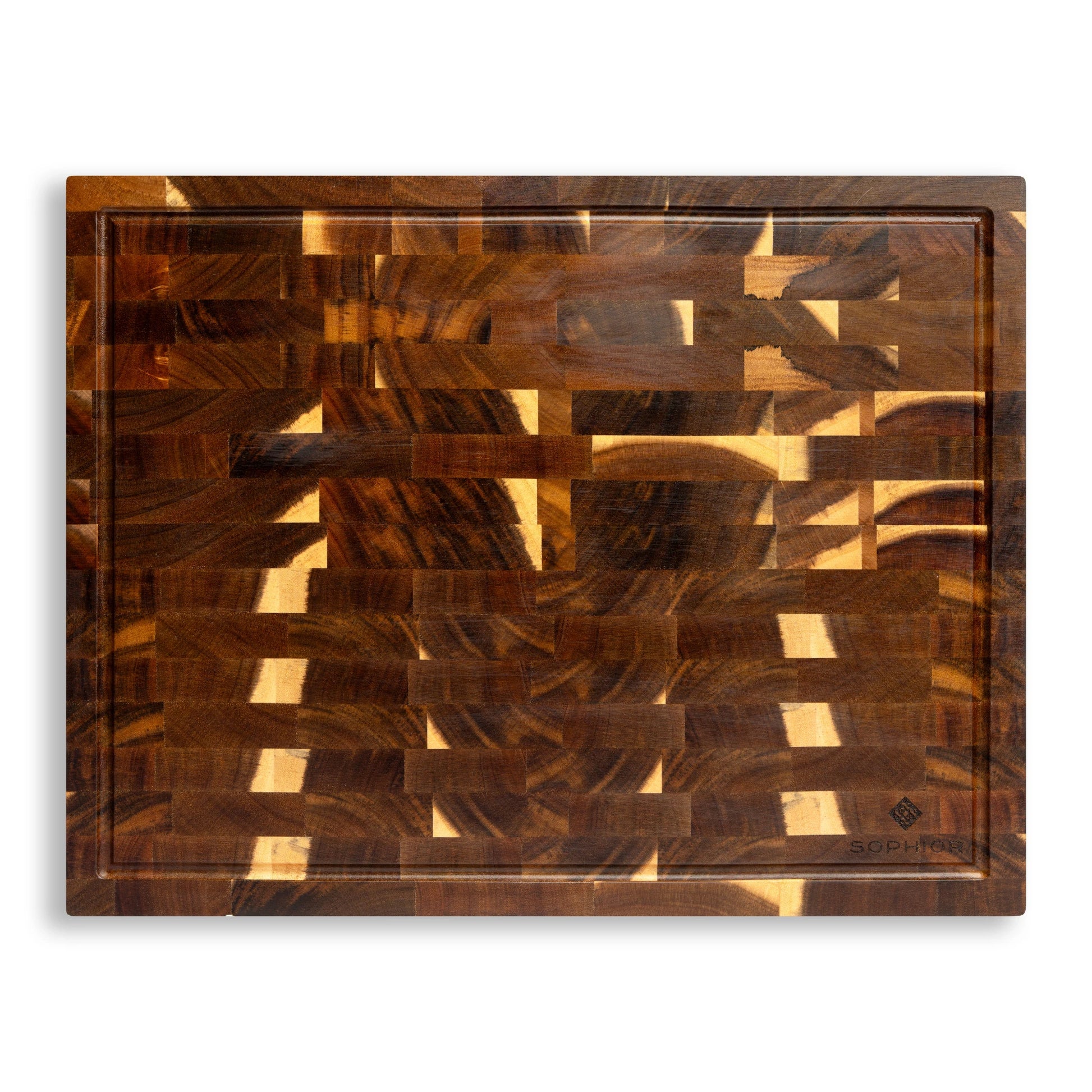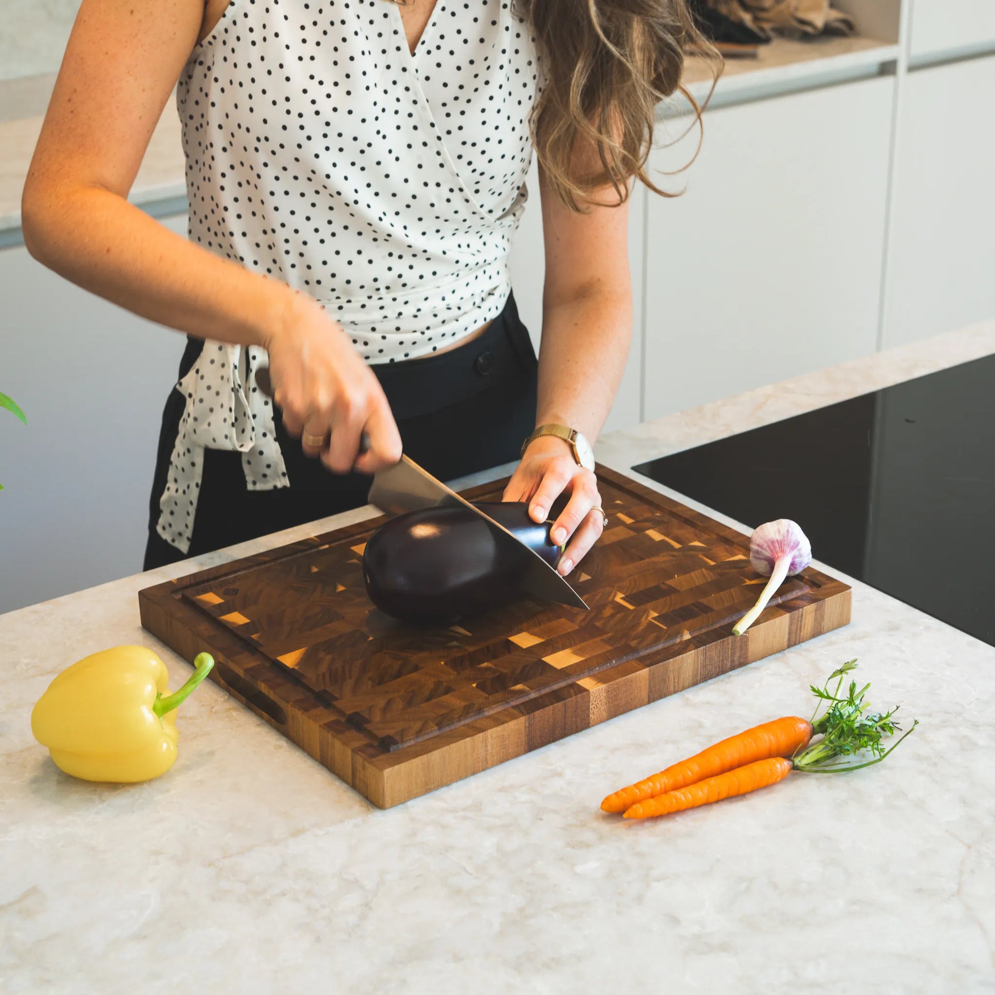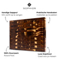 - Type hout: massief acaciahout, kopshout (end grain), FSC-gecertificeerd en duurzaam