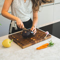 De dikte van 3 cm maakt dit model stevig genoeg om ook als hakblok te gebruiken. Acaciahout staat bekend om zijn hardheid en duurzaamheid, en beschermt je messen zodat ze langer scherp blijven. Daarnaast heeft acacia een prachtige warme uitstraling, waardoor deze plank niet alleen functioneel is maar ook direct een eyecatcher wordt. Gebruik hem tijdens het koken als stabiele snijplank en serveer er daarna met trots kaas, tapas of vlees van de BBQ op.