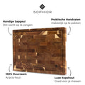 - Type hout: massief acaciahout, kopshout (end-grain), 100% FSC-gecertificeerd