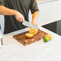 Plastic snijplanken laten microplastics achter in je eten en glas of titanium maken je messen bot. Deze compacte acacia houten snijplank is gemaakt van kopshout (end-grain), waardoor hij extra duurzaam is en je messen optimaal spaart. Ideaal voor kleinere snijklussen en tegelijkertijd stijlvol genoeg om als serveerplank te gebruiken.
