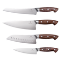 Dan is de SOPHIOR 4-delige Messenset precies wat je zoekt. Elk mes is vervaardigd uit één stuk hoogwaardig Duits roestvrij staal (1.4116) en voorzien van een FSC-gecertificeerd walnoothouten handvat. De set combineert de kracht van professioneel keukengerei met de elegantie van natuurlijk hout. Een duurzame keuze die generaties meegaat.