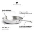 Kies vandaag nog voor de SOPHIOR RVS koekenpan 24 cm en ervaar het verschil: optimaal kookgemak, perfecte warmteverdeling en een pan die jarenlang meegaat.