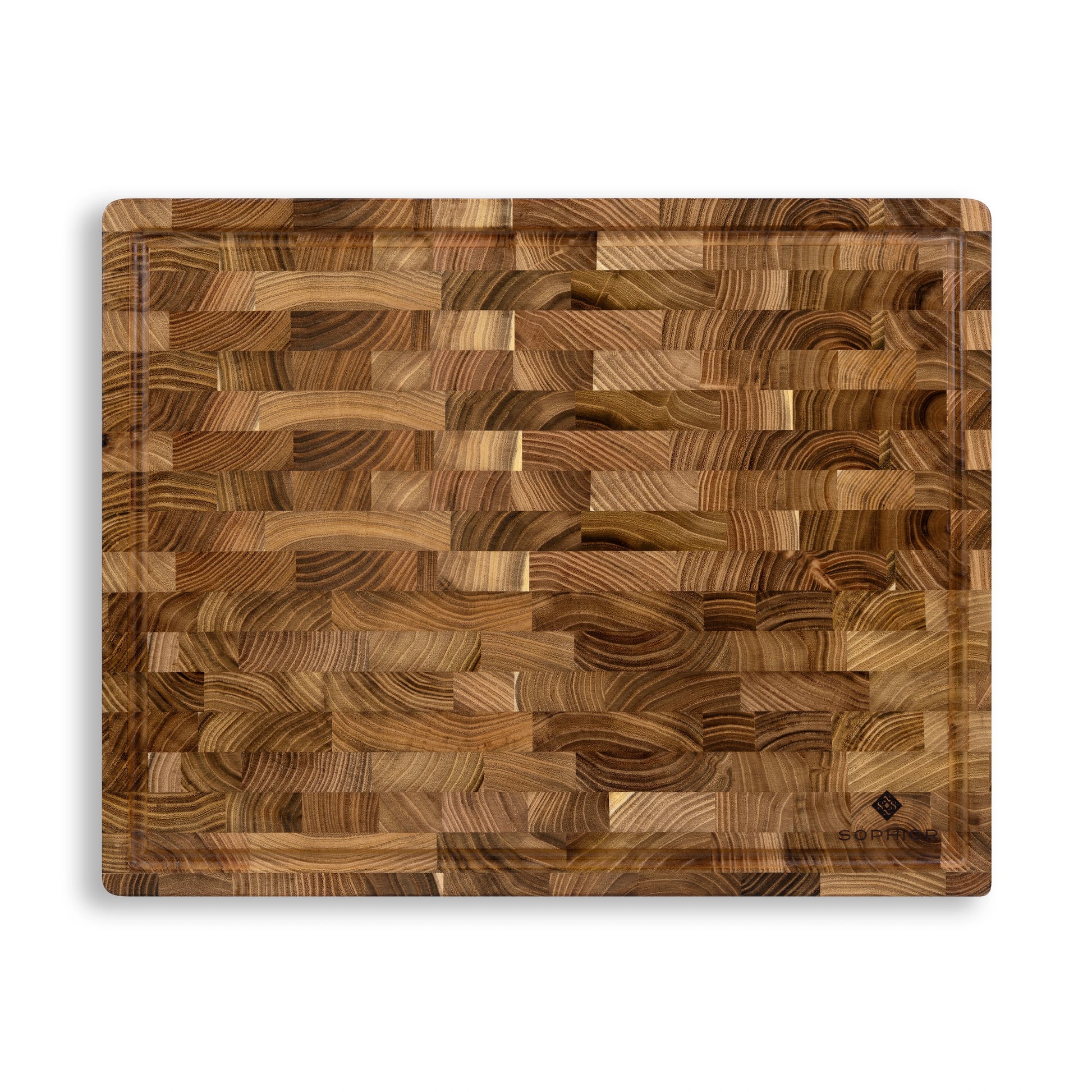 De SOPHIOR teak kopshout snijplank van 45×35 cm is de minst onderhoudsgevoelige plank in het assortiment. Teakhout bevat van nature oliën en harsen die het hout van binnenuit beschermen tegen vocht, bacteriën en schimmels. Waar andere houtsoorten regelmatig geoliëd moeten worden om stabiel te blijven, doet teakhout een groot deel van dat werk zelf. Voor thuiskoks die een hoogwaardige plank willen zonder intensief onderhoud, is teak de logische keuze.